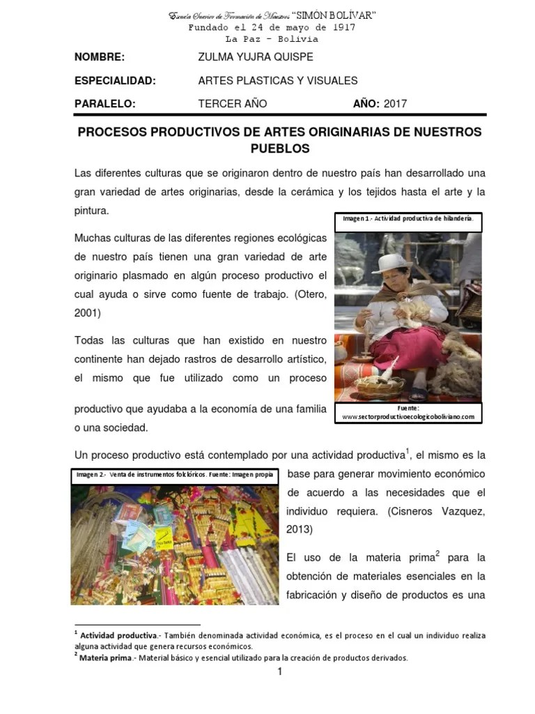 O solamente de decir, que la producción artesanal de las artes populares, tanto en el folclor u otro término utilizado se le denomine "arte" ya que el término es apropiado desde el punto de vista etnocéntrico de las. El arte constituye una de las formas de conciencia social, y especialmente, una de las formas de comunicacin humana, para esto, es necesario aclararnos primeramente algunos conceptos en torno al papel que juegan las imgenes estticas en el mercado capitalista, el cual reduce a la labor creadora del trabajador, obrero artista, considerando el. Artes originarias sus valores cultura y produccion. Desde la perspectiva del patrimonio cultural, es necesario un análisis crítico del proceso de modernización de la argentina, que en la segunda mitad del siglo xix abrió el debate sobre la construcción de una memoria nacional y, si bien no hubo opinión unánime al respecto, las poblaciones originarias americanas quedaron al margen de la ciudadanía y relegadas como mano de obra barata.